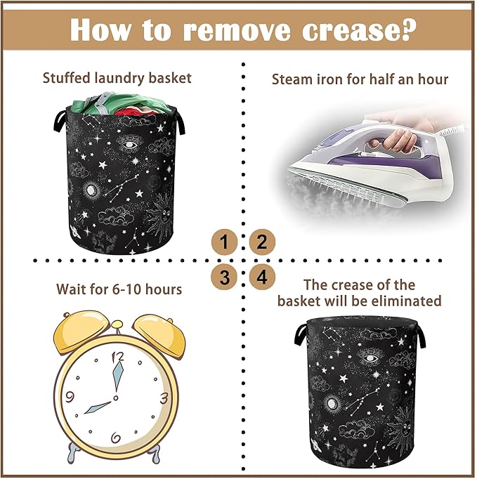 - Space-Saving Foldable Design:This laundry bin easily folds flat when not in use,saving valuable space. Note: The basket is delivered in compressed packaging and may appear wrinkled. It will regain its shape after being filled with items or gently steamed/ironed