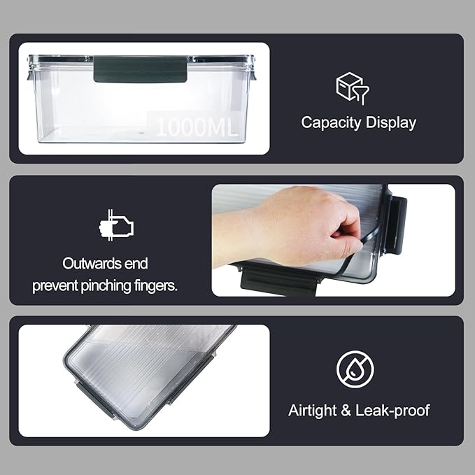 - Airtight: The snap lock on the lid with a built-in silicone sealing strip makes the freezer storage set locking edge fit, good sealing, spill-proof, and leakproof. Food containers can easily store and move food, prevent food from losing flavor, and extend the freshness time.
