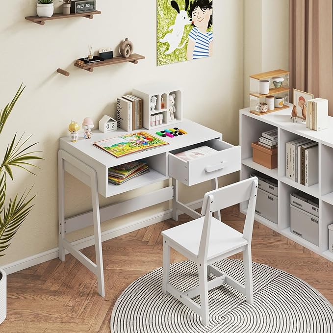 - Safety-First Design: With hidden screws and smooth rounded edges, this kids writing table and chair set is built with your child's safety in mind. Plus, the children study table and chair set also complies with ASTM and CPSIA and brings parents peace of mind.