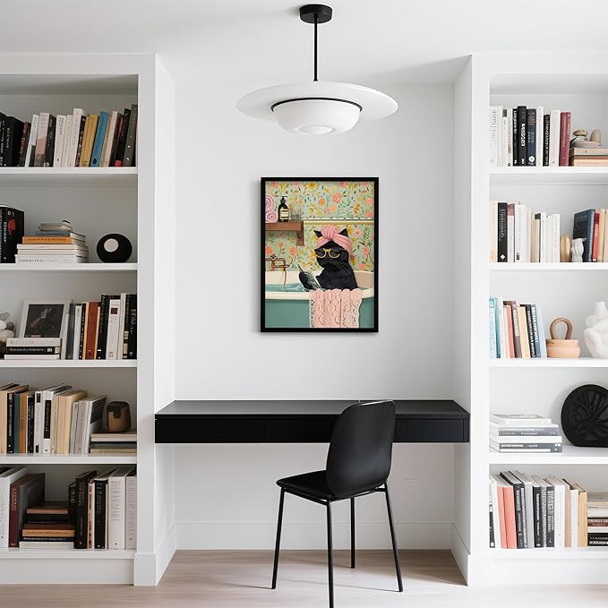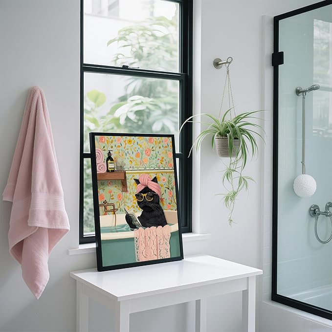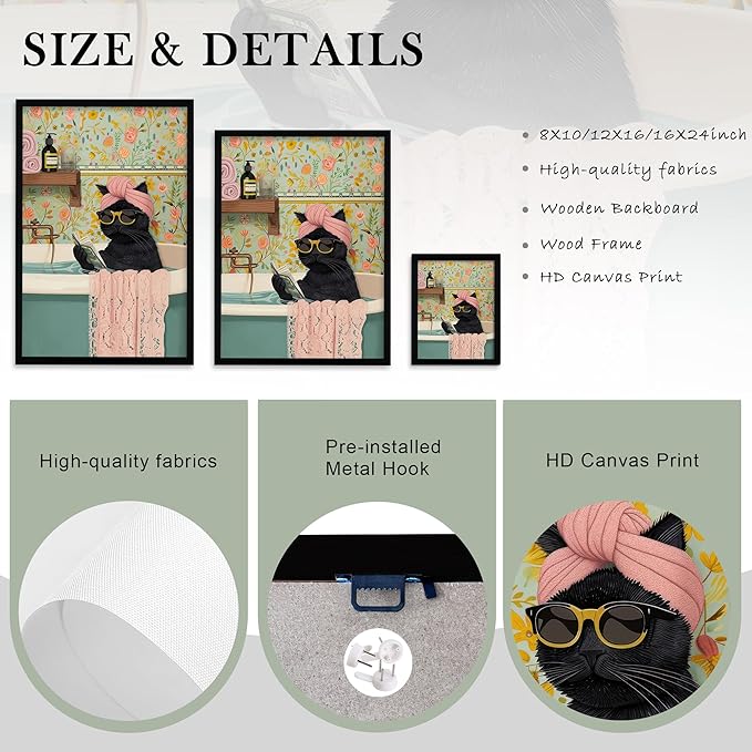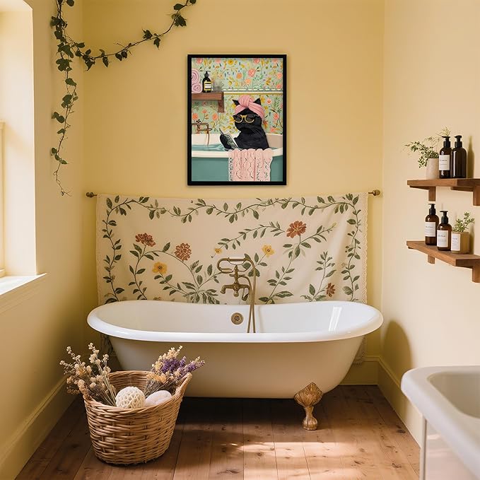 - 【Vintage Cat Canvas Wall Art】 Showcases an adorable black cat luxuriating in a bath. This whimsical illustration injects a dash of charm and contemporary flair, making it a standout piece for any room