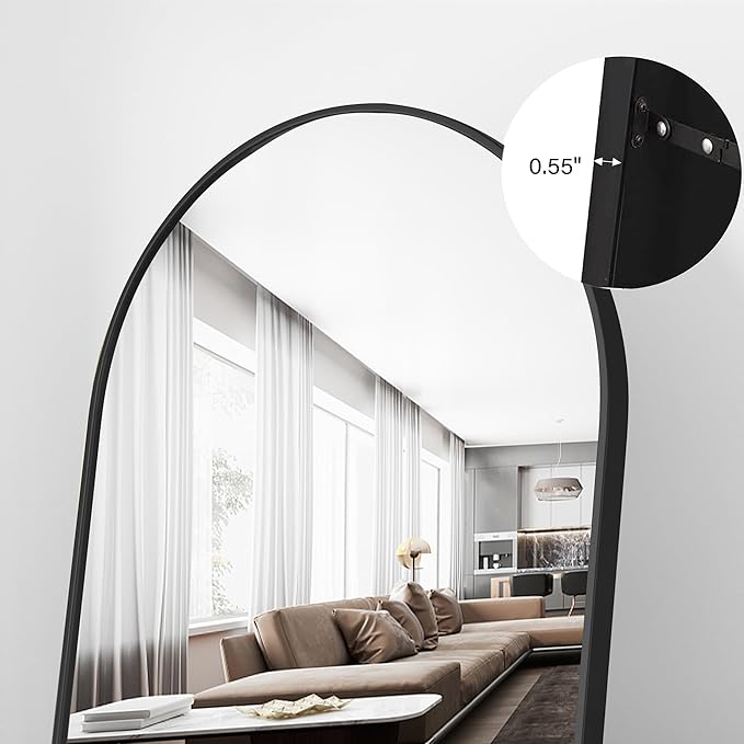 Full Length Mirror, 78"x38" Arched Floor Length Mirror with Stand, Black Body Mirrors Hanging or Leaning, Wall Mirrors Freestanding with Aluminum Frame for Living Room, Bedroom