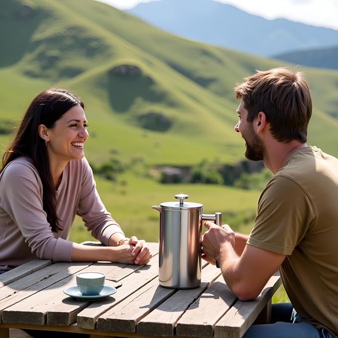 - Double-Wall Insulation: 304 stainless steel French press with double-wall construction keeps coffee hot longer while staying cool to touch