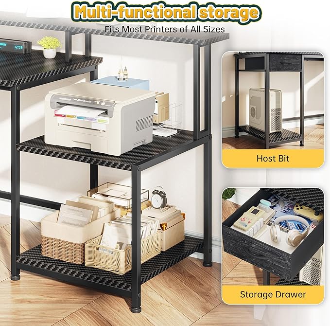 - Smart Storage Design: Back to school supplies! 1 fabric drawer, 1 Printer Space and 2 shelves, this versatile computer desk offers flexible organization options. The multi-functional storage system of our office desk ensures convenience and efficiency during both work and gaming sessions.