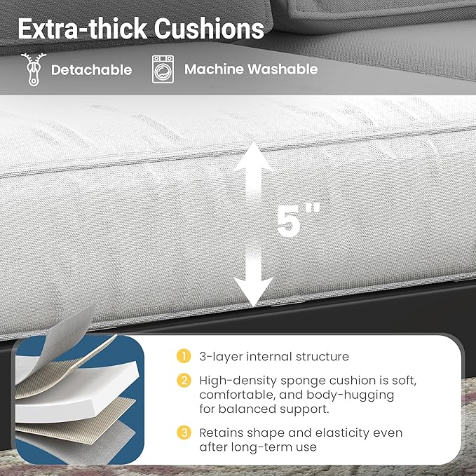 - Comfort Seating Experience: This 5'' thick cushion is filled with high-density foam, offering a soft, comfortable feel that molds to your body and delivers balanced support. It retains its shape and elasticity over time, even with frequent use, resisting sagging or deformation. The wide armrests provide extra support, making it perfect for relaxing and unwinding after a long day.