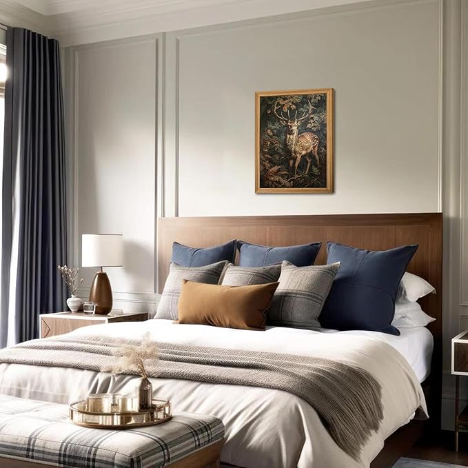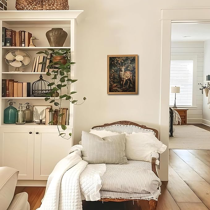- 【Charming Vintage Wall Art】This framed 3D textured vintage wall art features a hand-drawn sandstone Sika deer and botanical florals, bringing a touch of nature and vintage charm to your living room wall art or bedroom wall art. Perfect for adding an elegant dark academia vibe to any room.