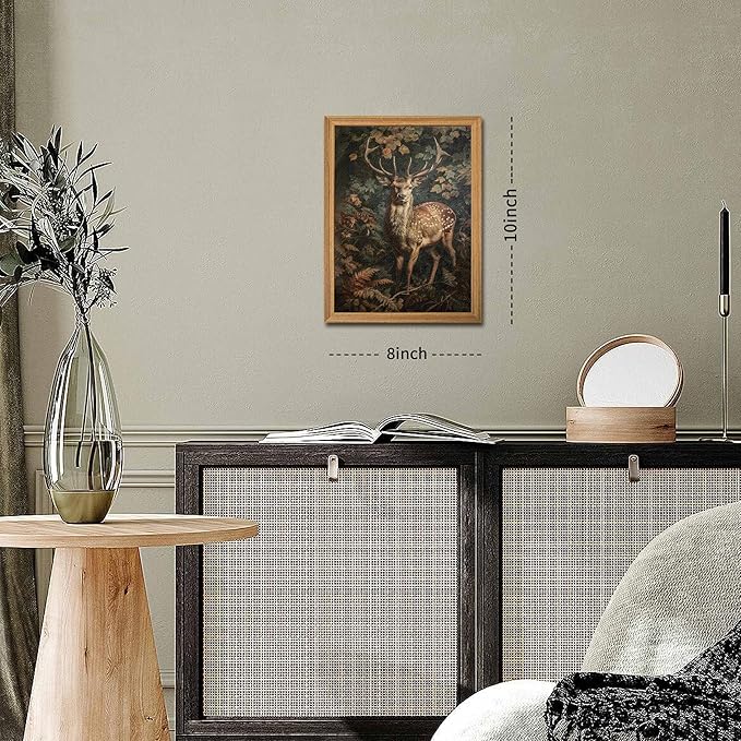 - 【3D Textured Design】With intricate textured wall art, the Sika deer and botanical florals come to life, providing a unique three-dimensional effect. Whether you're looking for nature wall art, vintage wall decor, or botanical wall art, this piece elevates the ambiance of your space.