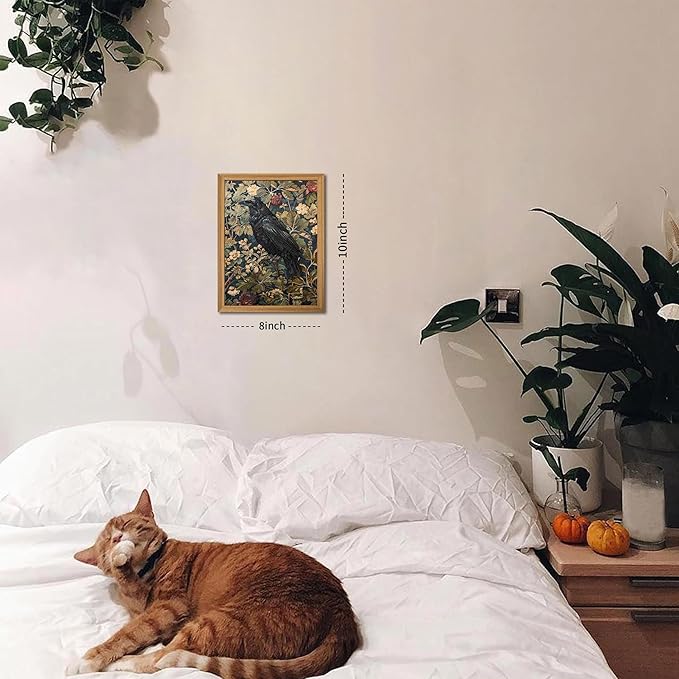 - 【3D Textured Design】With intricate textured wall art, the black crow and botanical details come to life, providing a unique three-dimensional effect. Whether you're looking for nature wall art, vintage wall decor, or botanical wall art, this piece will elevate the ambiance of your space.