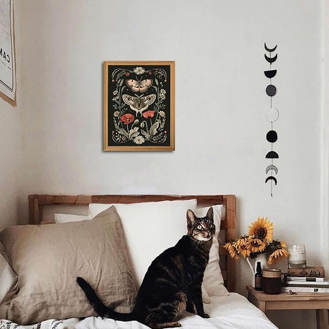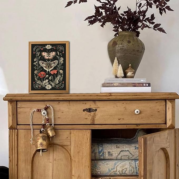 - 【Classic Vintage Wall Art】This mural combines classic style with delicate moth and floral patterns to create a unique vintage atmosphere, making your home space more elegant and artistic, perfect for decorating your bedroom, office, living room or study