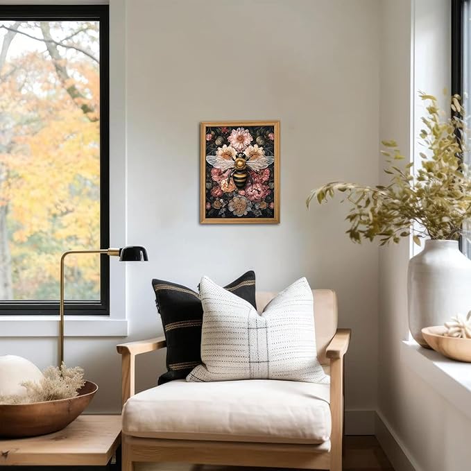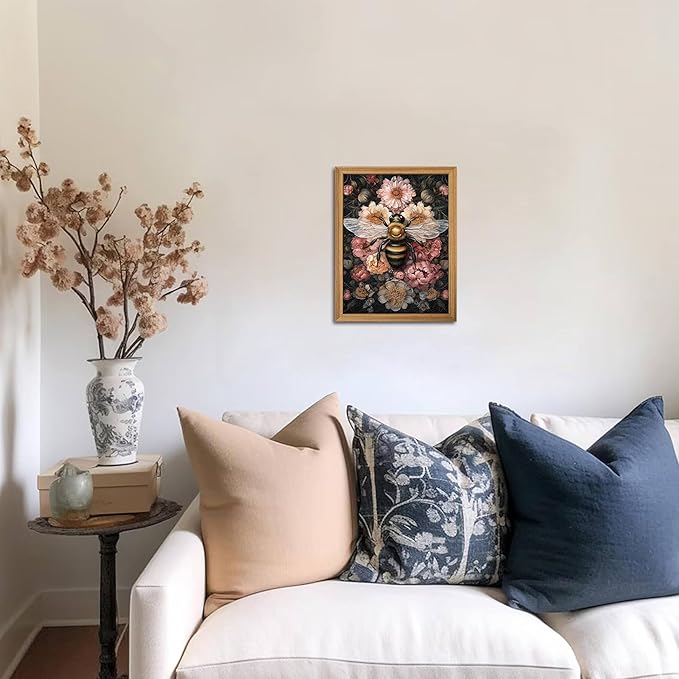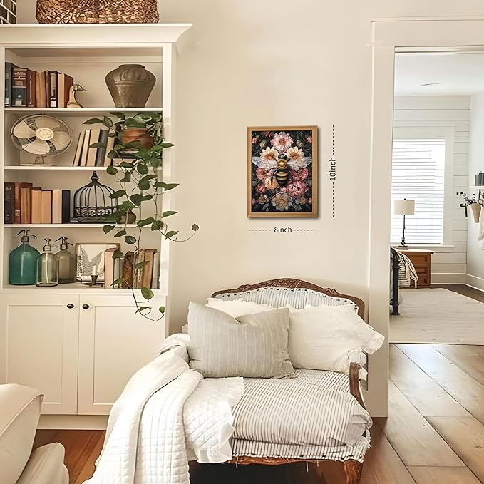 - 【Classic Vintage Wall Art】This mural combines classic vintage style with exquisite bee and floral patterns to create a unique vintage atmosphere, adding an elegant and natural touch to your home. Perfect for decorating your bedroom, office, living room or study