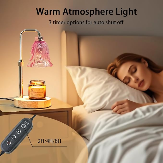 - TIMER: This aromatherapy scented candle lamp can be set by pressing the TIMER button, it can be set to turn off at a timed of 2/4/8 hours, especially when setting it before sleep or when you go out, the timer function can make you sleep or go out with peace of mind