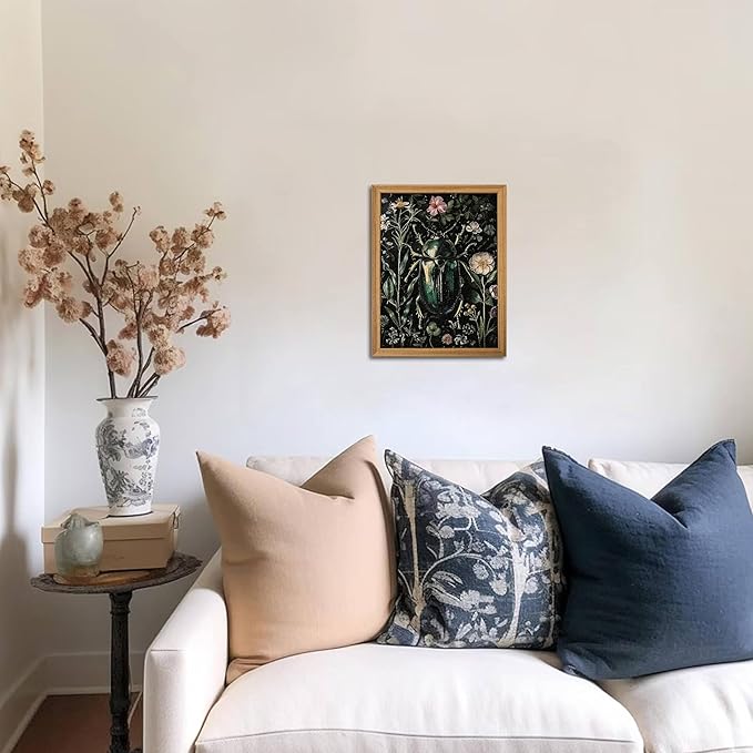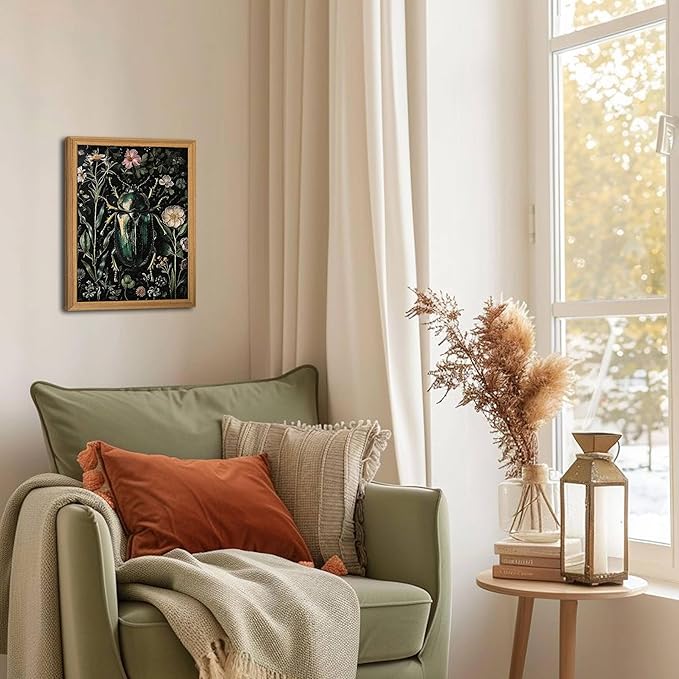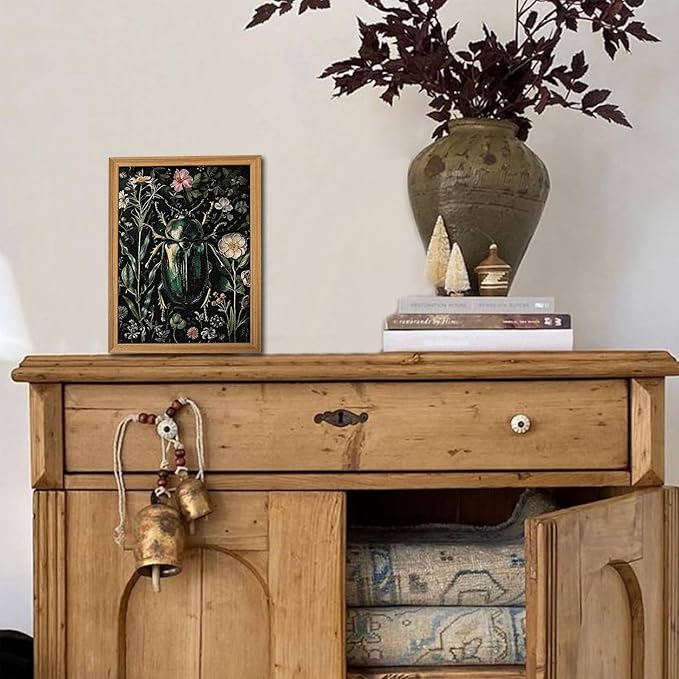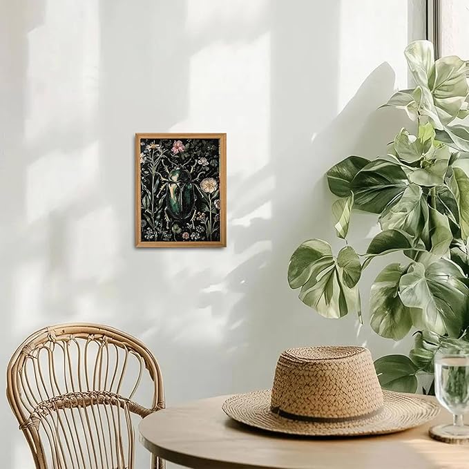 - 【Classic Vintage Wall Art】This mural combines classic vintage style with exquisite beetle and floral patterns to create a unique vintage Gothic atmosphere, adding an elegant and natural touch to your home. Perfect for decorating your bedroom, office, living room or study room