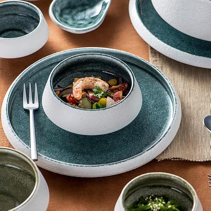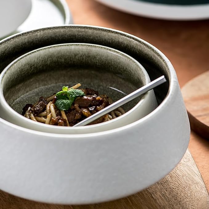 - STUNING & EXQUISITE GLAZE:The testure matte white outside with glossy glaze inside technique gives this kitchen dishware fun and artsy.Breaks from tradition to bring an unexpected look to the tabletop.