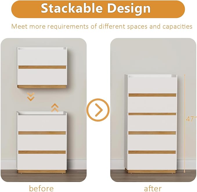 - [Stacking & Free Combination] This wood stackable drawers can not only be combined horizontally but also extended vertically, applicable to different capacity and space requirements