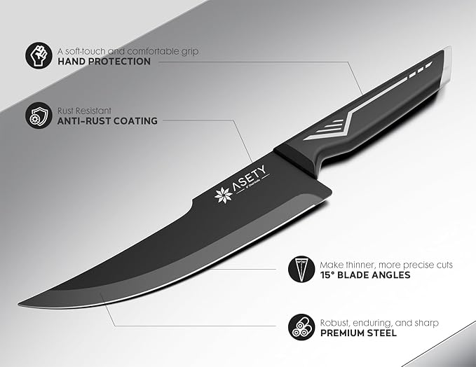 - Advanced Blade Design: Each sleek, angular blade features a 15-degree edge that reduces friction for smooth, effortless cuts.Whether you're dicing, slicing, or chopping, it ensures clean, precise cuts with ease.