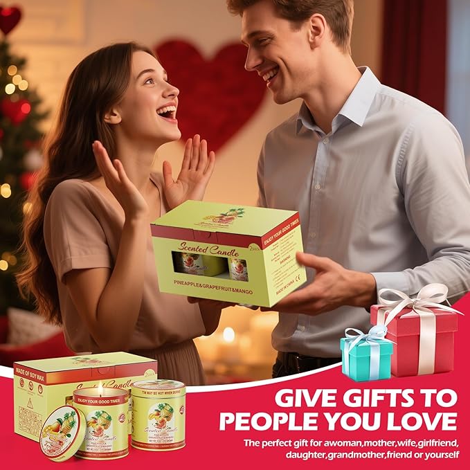 Pineapple Grapefruit Mango Scented Candles Set | 2 Pack 510g 8% Essential Oils 80H Burn | Smokeless Clean Burning Aromatherapy Tin Jar Candles for Home Relaxation, Yoga, Spa Gift for Men&Women