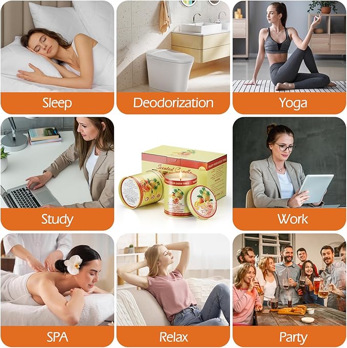 - 【Tropical Fruit Fusion Scent】 Experience the vibrant blend of pineapple, grapefruit & mango in every burn. Infused with 8% premium essential oils, our mixed aroma candle delivers high-intensity fragrance to eliminate odors and create a refreshing atmosphere. Perfect for home aromatherapy candles to uplift your mood instantly.