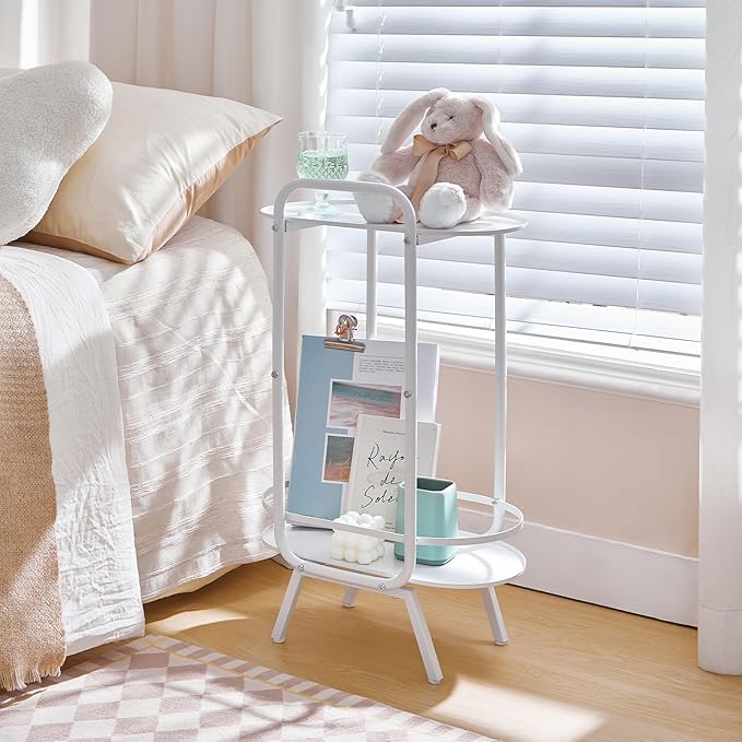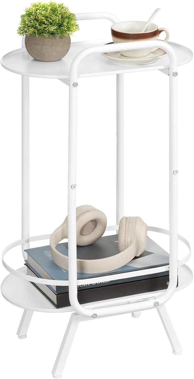 HOOBRO White Side Table, 2 Tier Oval End Table with Tray Storage, Small Cute Kids Nightstand for Living Room, Bedroom, Dorm WT184BZ01