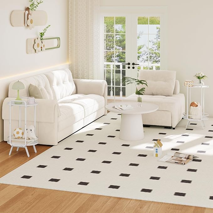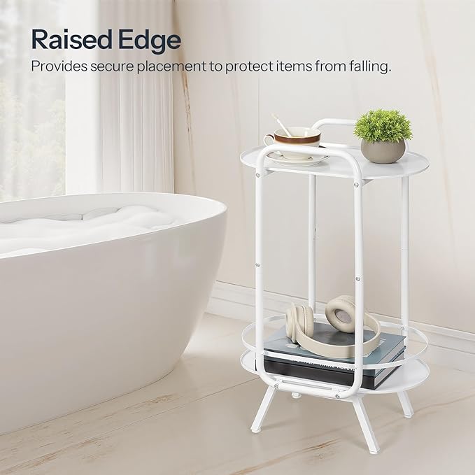 - Double-layer Storage: Measuring 15.9"L x 9.3"W x 27.6"H, this small white side table fits tight spaces. Its a two-tier tray design with raised edges that provide a safety surface for drinks, photo frames, plants or books, etc.