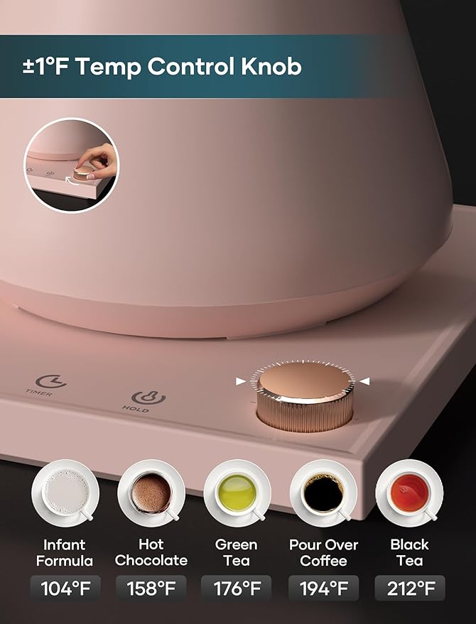 Electric Kettles, Gooseneck Electric Kettle, ±1℉ Temperature Control, Stainless Steel Inner, Quick Heating, for Pour Over Coffee, Brew Tea, Boil Hot Water, 0.9L Pink