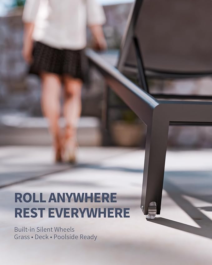 - 【Dual-Wheel Mobility】The aluminum deck lounger is convenient to glide from morning coffee spots to afternoon garden shade with the added smooth-rolling wheels at the base. Effortlessly reposition your chaise recliner single-handedly across lawns/pool decks/terraces.