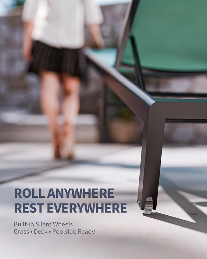 - 【Dual-Wheel Mobility】The aluminum deck lounger is convenient to glide from morning coffee spots to afternoon garden shade with the added smooth-rolling wheels at the base. Effortlessly reposition your chaise recliner single-handedly across lawns/pool decks/terraces.
