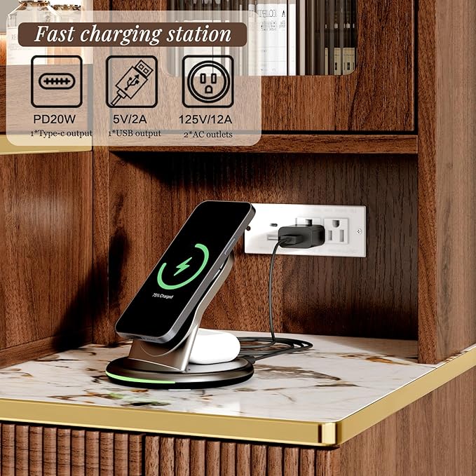 - 【Vanity Table with Charging Station】-This makeup vanity features a charging station, includes 2 standard plug sockets and 2 USB ports, which can be more convenient to connect your hair dryer, curling iron, and it can also charge your phone, tablet or other mobile devices, The unique design is more convenient for you to use.
