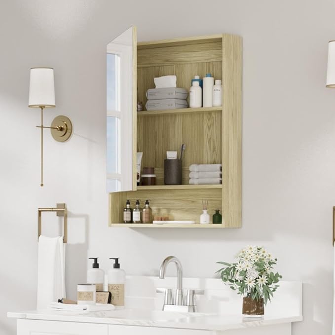 - 2 in 1 Mirror Cabinet : Our medicine cabinets have a versatile design. You can just use the outside mirror and dress yourself up, you can also open the cabinet door and inside is a storage cabinet for medicines, toiletries, towels and more. It is a combination of mirror and cabinet