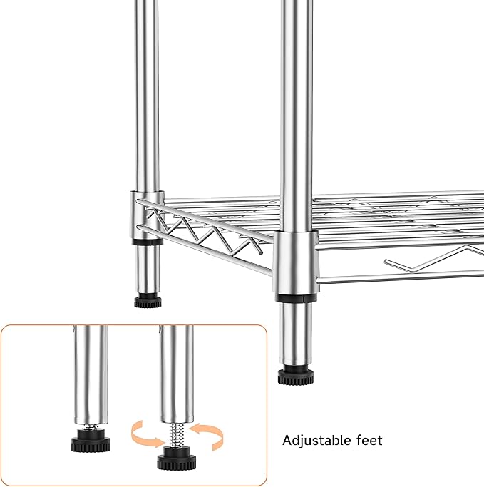 - Strong & Durable: Built with high-quality carbon steel, this 4-tier wire shelving unit offers reliable strength and long-term durability. Perfect for organizing kitchen supplies, office essentials, or household tools.
