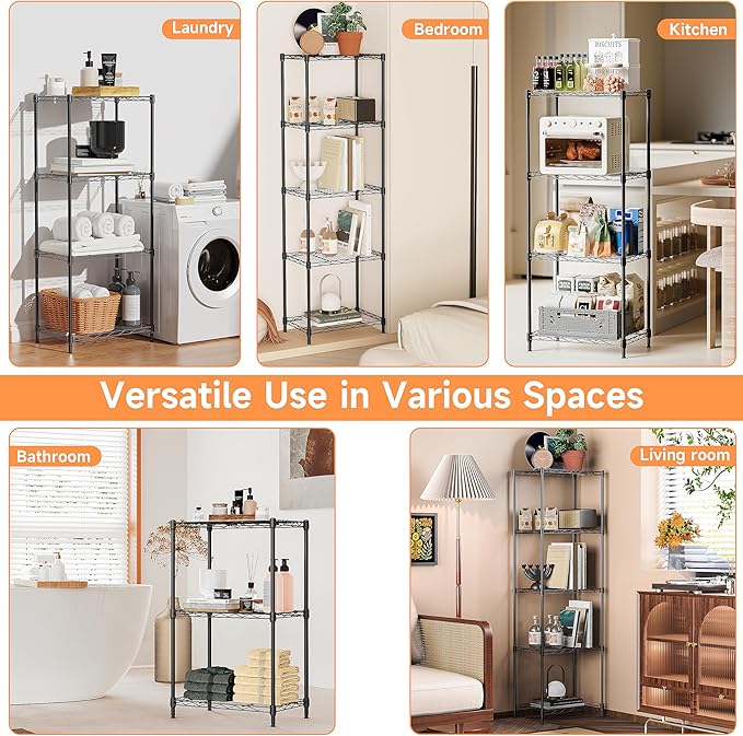 - Vertical Space Saver: Tall 5-tier design makes full use of vertical space without taking up too much floor area.