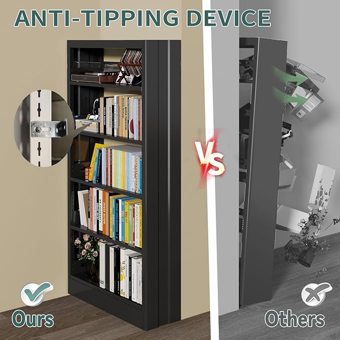 - Multi-Safety Design: The rounded edges of the large bookcase are designed to prevent accidental collisions and the non-slip mat prevents scratching the floor. The book stopper can prevent books from falling, and you can freely choose to install it on the back or front of the bookshelf for better protection. Anti-tipping design can prevent the tall bookcase from collapsing accidentally.