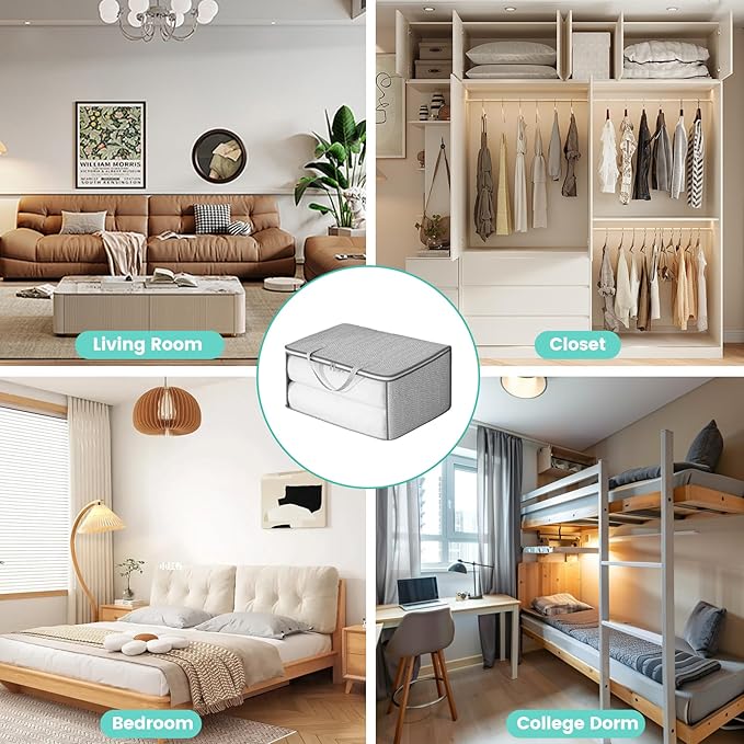 4 Pack Grey Comforter Storage Bags, Clothes Storage Bags, Collapsible Closet Organizers with Reinforced Handles, Heavy-Duty Storage Totes for Clothes & Comforters