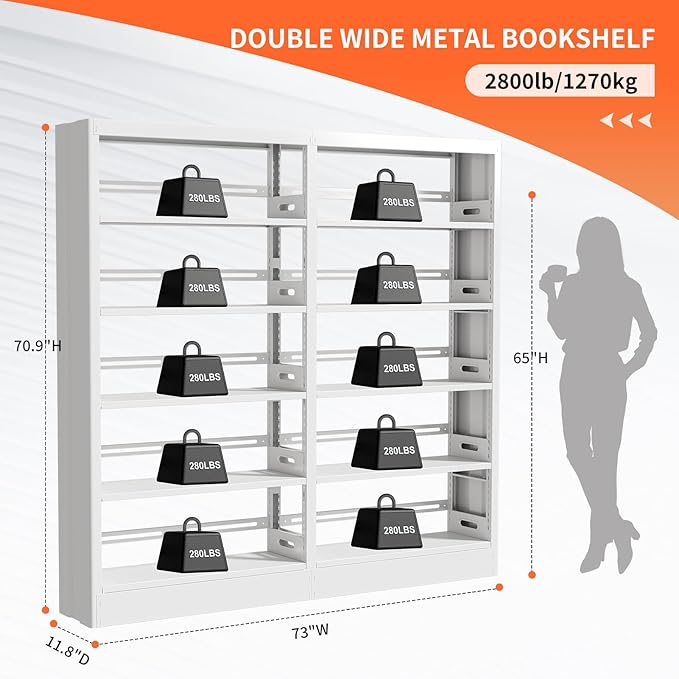- Stability & Long-Lasting: The book shelf as a whole is made entirely of metal, making it stronger and more stable than wooden book shelves, with a maximum weight capacity of 280lbs per shelf. The metal surface is powder coated, so you can use it with confidence.