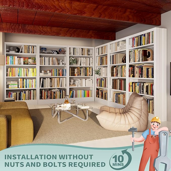 - Multi-Safety Design: The rounded edges of the large bookcase are designed to prevent accidental collisions and the non-slip mat prevents scratching the floor. The book stopper can prevent books from falling, and you can freely choose to install it on the back or front of the bookshelf for better protection. Anti-tipping design can prevent the tall bookcase from collapsing accidentally.