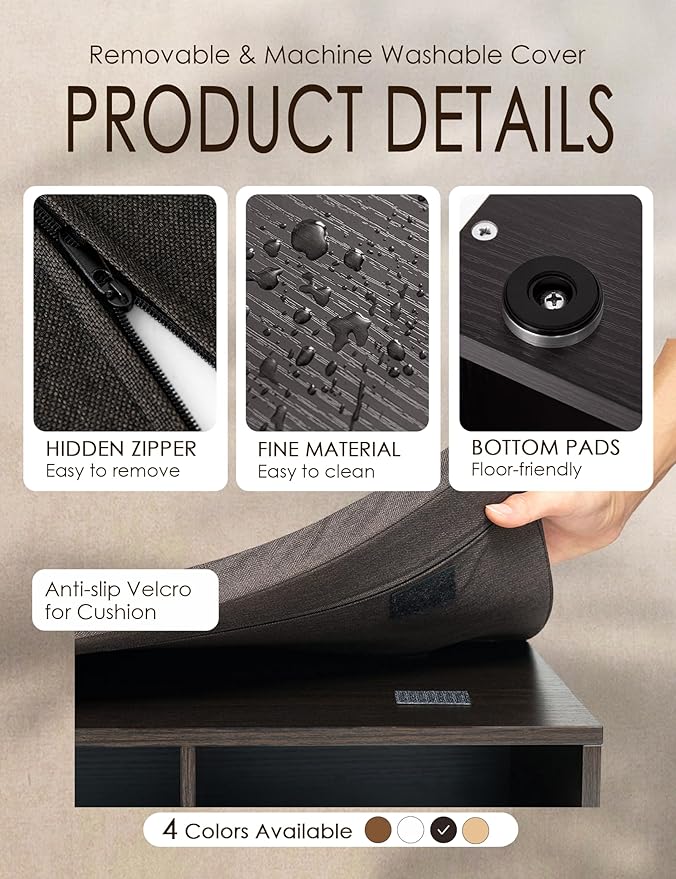 - 【Focus on Details】The sponge cushion is high resilient, soft, breathable without deformation. Zippered cotton and linen dust cover is removable and washable. Velcros secure the cushion to the mudroom bench, preventing shifting and slipping. Non-slip pads on the bottom protect your floor from scratches