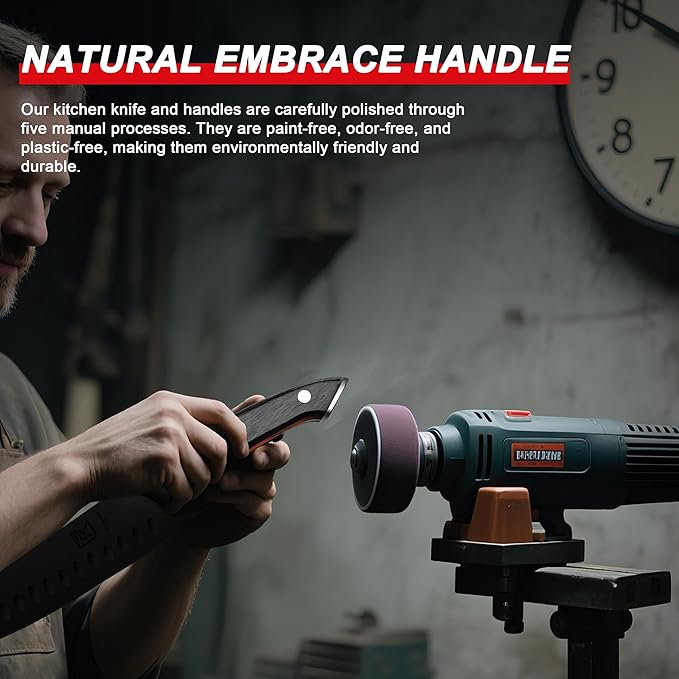 - 【UNIQUE CRAFTSMANSHIP】Our Kitchen Knife Are Made Of High-Quality Japanese Steel And Carefully Polished By Hand. No Paint, No Odor, No Plastic, Environmentally Friendly And Durable, Enhancing Your Cooking Experience