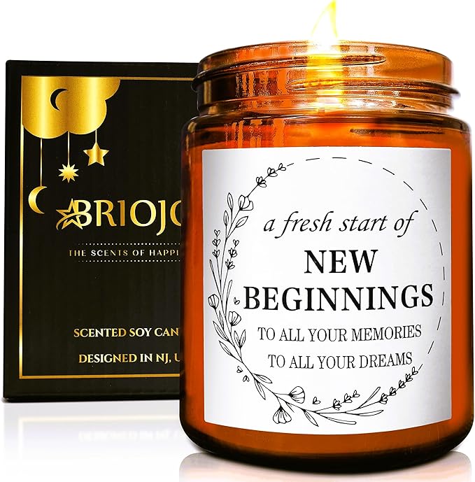 - ๐บ WARM HEARTS AND SPIRITS: Celebrate a fresh start with our New Beginnings scented candle- an inspiring gift for every chapter in life. Whether it's for a new job, home, baby, promotion, farewells, going away, congratulations, graduations, moving away, housewarming, retirement, divorce, relationship, recovery, or good luck, this candle brings warmth and encouragement for the journey ahead.