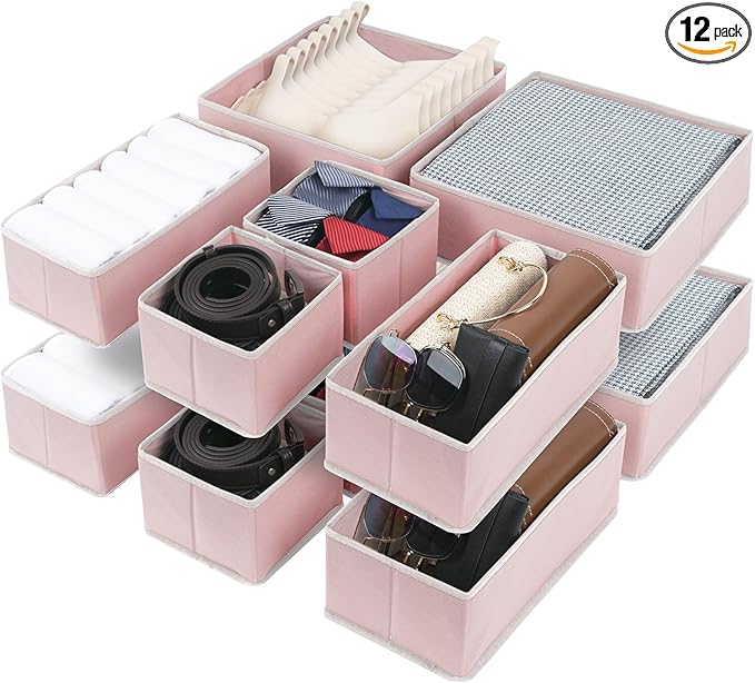 Cupic Cupid Drawer Organizer, Dresser Organizers, Foldabe Drawer Organizer Clothes, Closet Organization and Storage Dividers for Socks, Underwear and Diaper, Set of 12, Pink