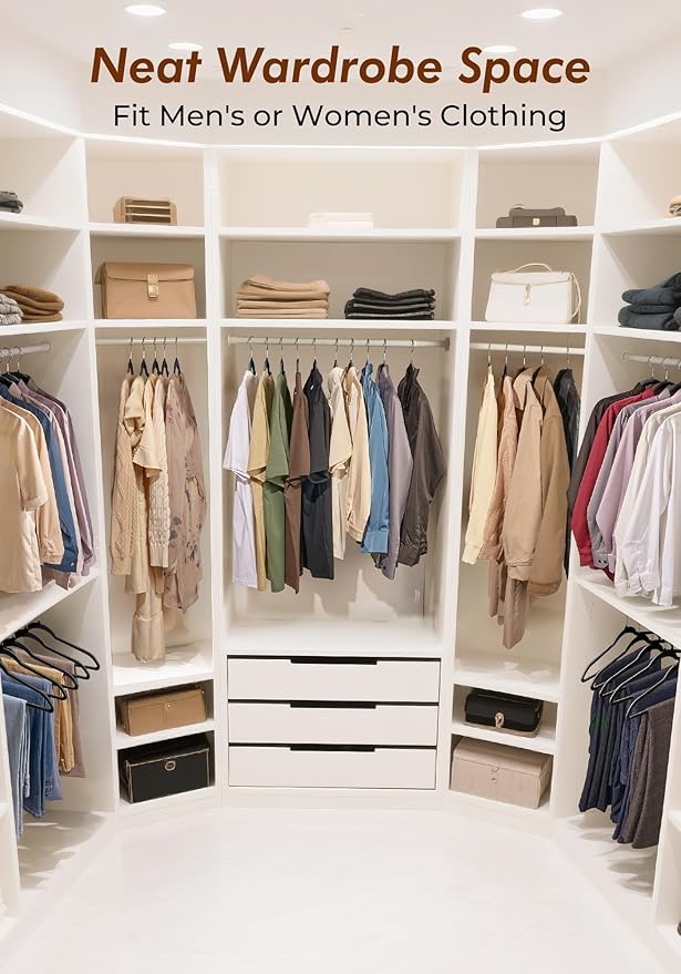 - Perfect for home, travel, or retail displays – includes 50 pack with 360° swivel rust-proof metal hooks. Fit men's or women's clothing wardrobe