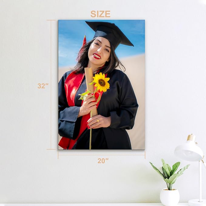 - 【Custom Canvas for Graduation Memories】Upload your photos and capture unforgettable graduation moments with a custom canvas that transforms your photos into a timeless masterpiece.Enjoy vibrant, gallery-wrapped canvases that celebrate milestones like cap-and-gown ceremonies or diploma signings.