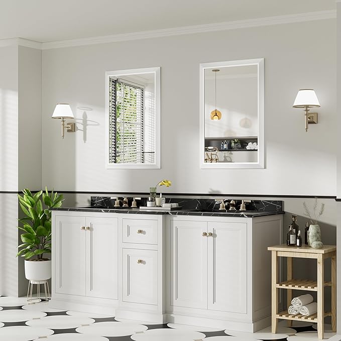 - 【Overall Aesthetics for Room Decor】The white bathroom mirrors for over sink with its modern frame, not just for bathroom, it also can be used in a variety of scenarios, like vanity, farmhouse, bedroom, living room, dining room, entryway, fireplace, corner which is perfect to a room remodeling project and adds a stylish look to your house.