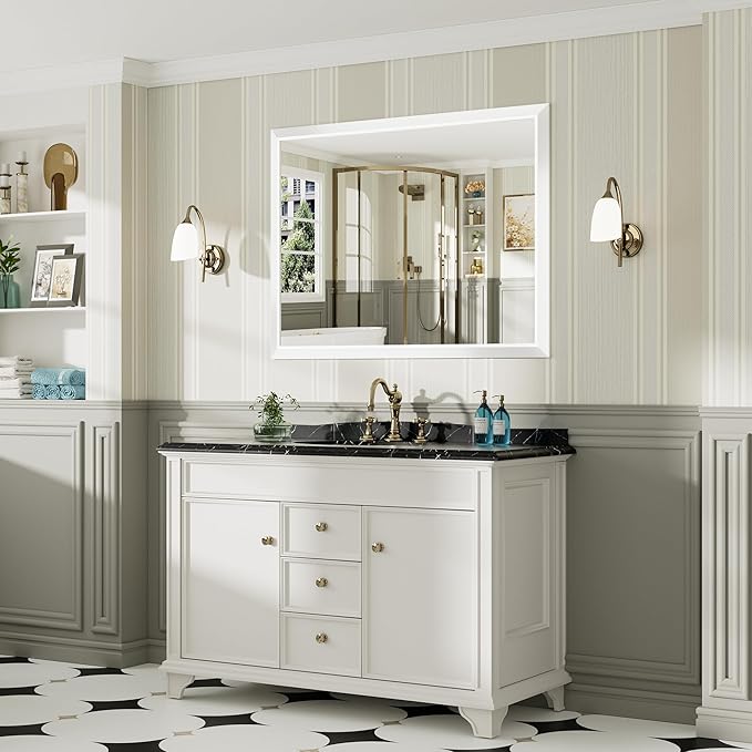 48x36 Inch White Bathroom Mirror for Wall, Thick Metal Framed Rectangle Mirrors for Over Sink, Bedroom, Living Room, Entryway, Anti-Rust, HD Tempered Glass