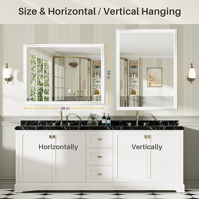 - 【Easy to Install: The modernized mirror comes with two Z-bar wall brackets, it's easy to install the mirror and you can choose to hang the mirror vertically or horizontally depending on the specifications of your bathroom. The bracket is sturdy enough to support the weight of the mirror.