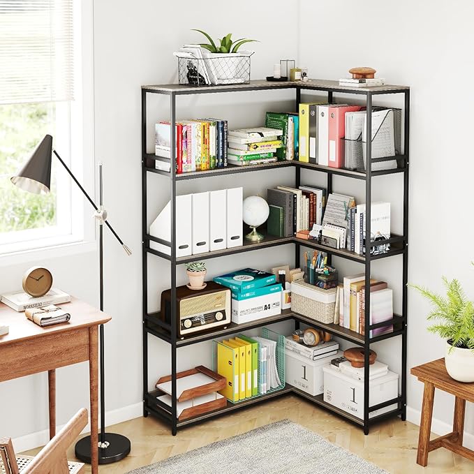 - Wide Application: Designed in a modern industrial style, this corner bookshelf is not just practical but also a beautiful decor piece. It suits living rooms, offices, or balconies, enhancing the ambiance while offering valuable storage.