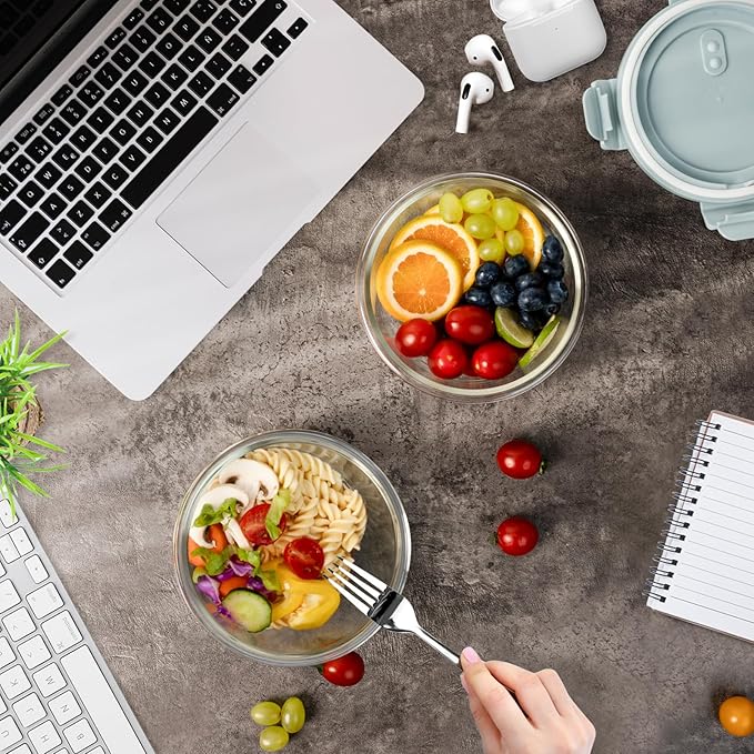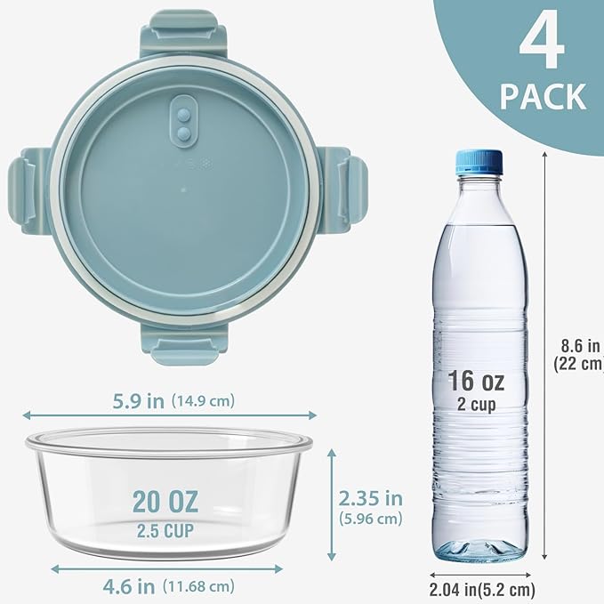 - 4-PIECE SET: Set includes (4) 2.5-cup round glass containers with lids. These are the perfect containers for meal prepping or storing leftovers,soup, salad, etc. They also resist stains, odors, and flavors.