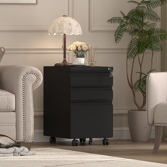 - 【Locking System】This 3 drawer file cabinet with lock is equipped with a locking mechanism. One lock and two keys can secure all 3 drawers, providing more security for your home and office.