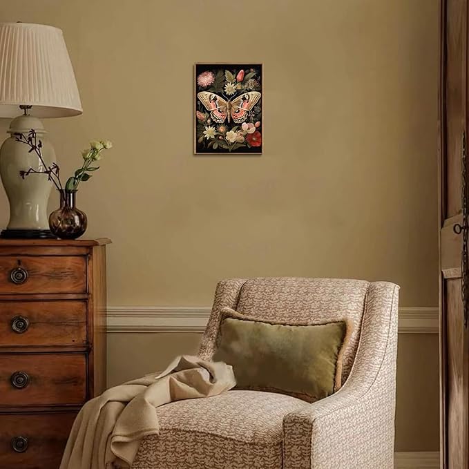 Djmwtb Vintage Framed Wall Art Butterfly Floral Canvas Wall Art Prints Boho Botanical Painting Flower Pictures Wall Decor Artwork for Living Room Bedroom Bathroom Office 8x10in