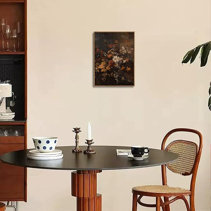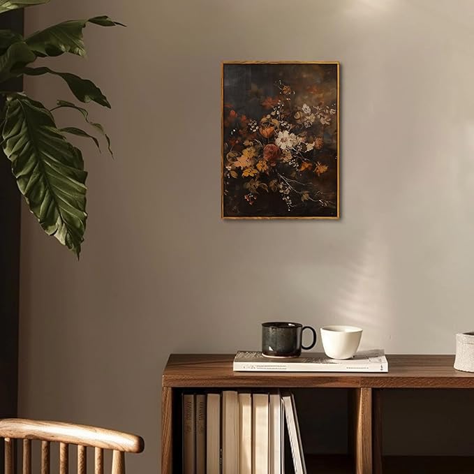 Djmwtb Vintage Framed Wall Art Dark Floral Canvas Wall Art Prints Moody Botanical Painting Flower Pictures Wall Decor Artwork for Living Room Bedroom Bathroom Office 8x10in