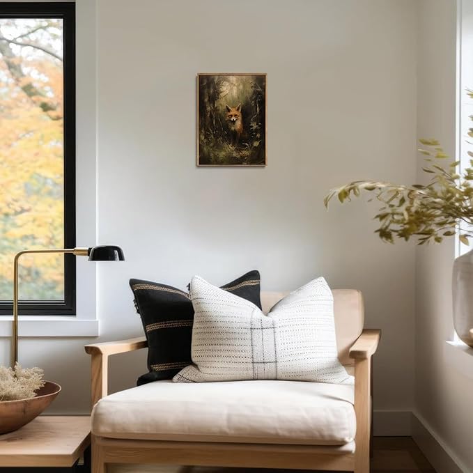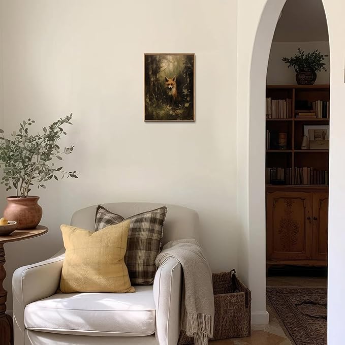 Djmwtb Vintage Framed Wall Art Fox Canvas Wall Art Prints Forest Animal Pictures Dark Academia Painting Wall Decor Artwork for Living Room Bedroom Bathroom Office 16x24in