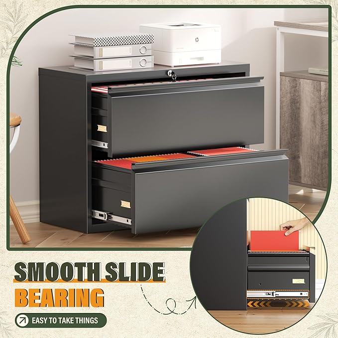 - [Thoughtful Detail Design]: The drawer slides of this filing cabinet with lock are designed with precision steel ball bearings and equipped with complete extension parts, ensuring smooth and unobstructed opening and closing of the drawers. Our black filing cabinet has specially added a protective cover at the bottom to effectively prevent friction between the cabinet and the ground, protecting your floor from scratches.