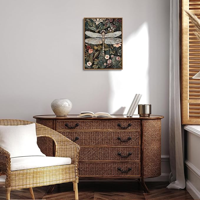 - Vintage Framed Wall Art: This vintage framed dragonfly canvas wall art prints combines vivid natural elements, it is a perfect piece for those who love vintage art.Excellent color reproduction and structural details ensure that every element of the design is well-loved, showing the true beauty of the vintage mural.